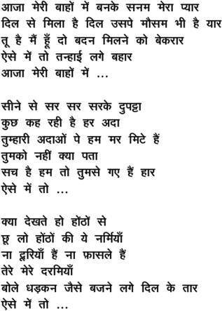 aa jaa merii baa.Nho.n me.n ban ke sanam meraa pyaar