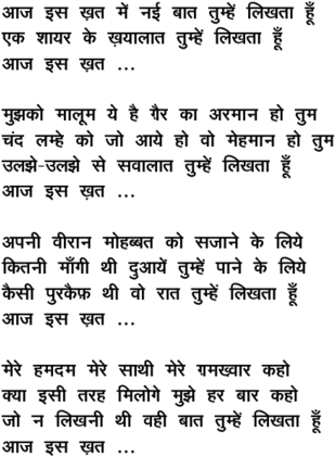 aaj is Kat me.n na_ii baat tumhe.n likhataa huu.N - - Rafi