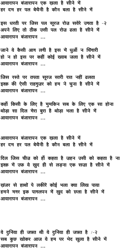 % Transliterator: V S Rawat % Producer: Shreya Creations Pvt Ltd, Fish Eye Network Production, Pooja Bhat, Sujit Kumar Singh % Director: Amit Saxena % Audio: Saregama India Ltd % Cassette: NHF 810546 Digital, Cost: Rs 55/-, CD: CDF 112043, Cost: Rs 125/-
