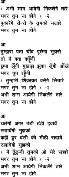 % Contributor: Malini Kanth, Sep 2, 2004 % provided second stanza as FITB % Song courtesy: http://www.indianscreen.com (Late Shri Amarjit Singh)