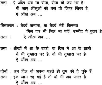 ai aa.Nkh ab naa ronaa ronaa to umr bhar hai