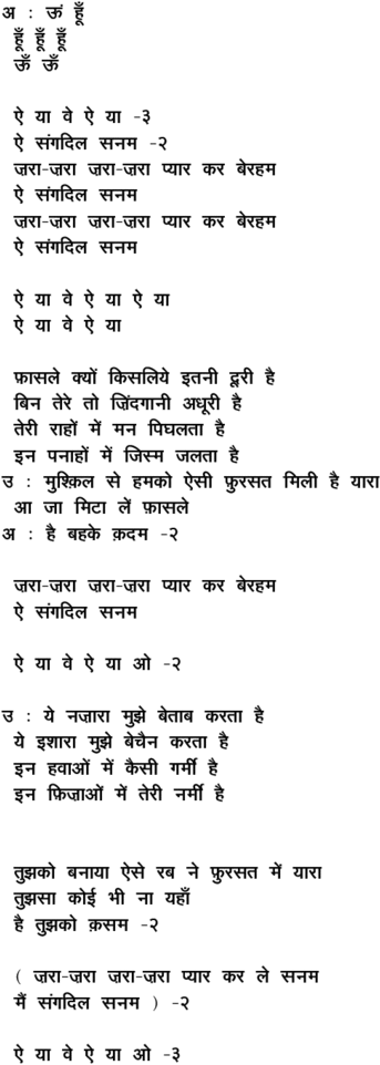 ai sa.ngadil sanam zaraa\-zaraa pyaar kar beraham