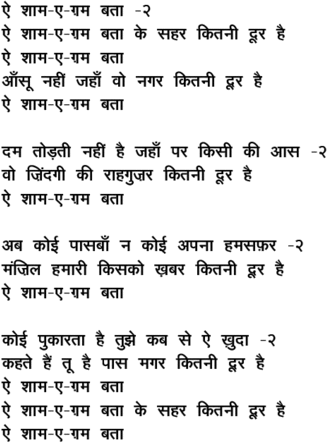 ai shaam\-e\-Gam bataa ke sahar kitanii duur hai