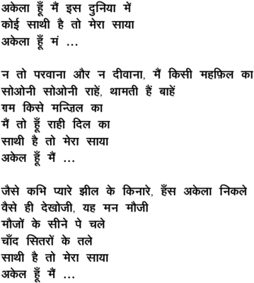 akelaa huu.N mai.n, is duniyaa me.n
