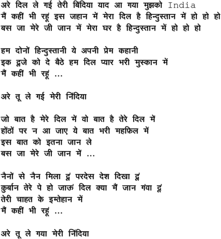 are dil le ga_ii terii bi.ndiyaa yaad aa gayaa mujhako ##India##