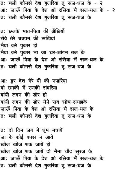 chalii kaun se desh gujariyaa tuu saj\-dhaj ke