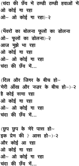 cha.ndaa kii chhaa.Nv me.n ... o koii gaa rahaa