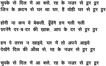 chupake se dil me.n aa base rah ke nazar se duur duur