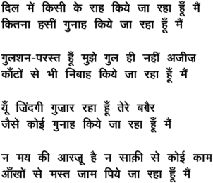 dil me.n kisii ke raah kiye jaa rahaa huu.N mai.n
