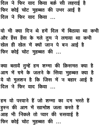 - Singer(s): Mohammad Rafi, Mukesh, Suman Kalyanpur