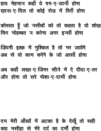 haay mehamaan kahaa.N ye Gam\-e\-jaanaa.N hogaa