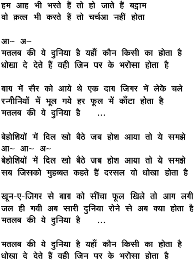 ham aah bhii bharate hai.n ... matalab kii ye duniyaa hai