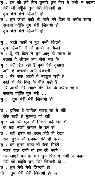 ham jii le.nge bin tumhaare ... kyuu.Nki tum merii zindagii ho