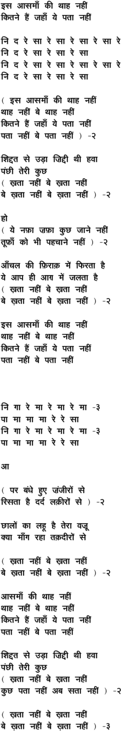 is aasamaa.N kii thaah nahii.n ... pa.nchhii terii kuchh Kataa nahii.n