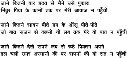 jaane kitanii baar h^Riday se mai.nne