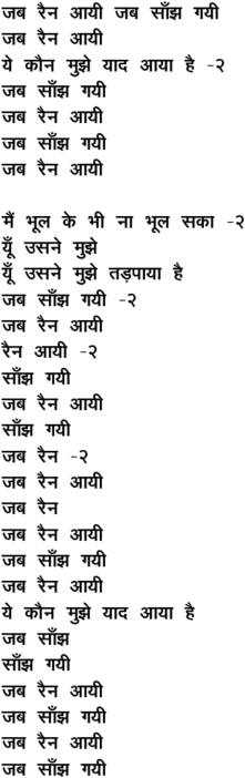 jab rain aayii ... ye kaun mujhe yaad aayaa hai