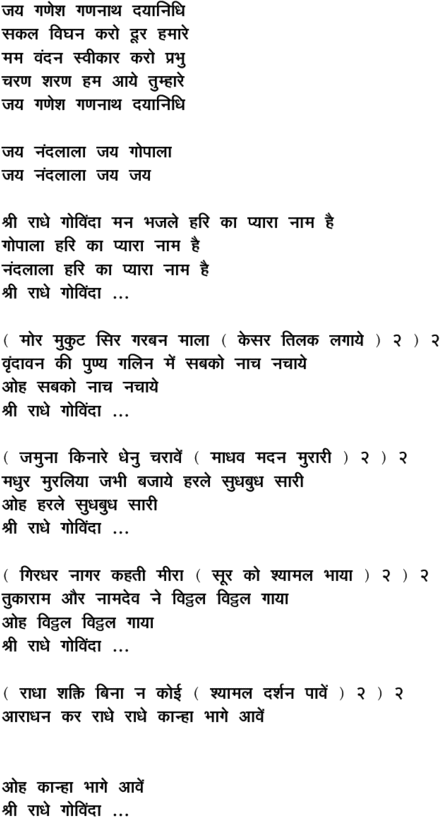 jay gaNesh gaNanaath dayaanidhi ... shrii raadhe govi.ndaa man bhaj le - - Hari Om Sharan