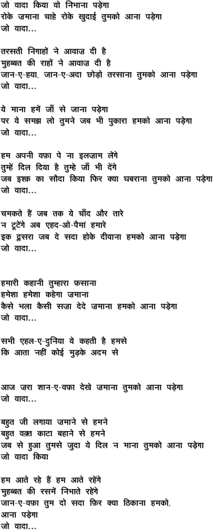 jo vaadaa kiyaa vo, nibhaanaa pa.Degaa