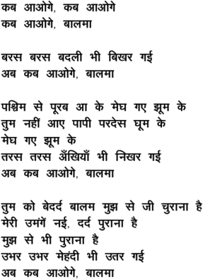 % Date: 03 feb 2003 % Credits: Hamraaz Sahab % Comments: Latanjali Series. Film 'gajare'