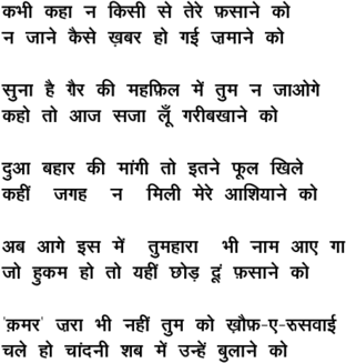 kabhii kahaa na kisii se tere fasaane ko - - Munni Begum