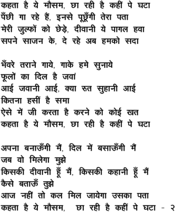 kahataa hai ye mausam, chhaa rahii hai kahii.n pe ghaTaa