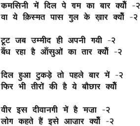 kamasinii me.n dil pe Gam kaa baar kyo.N