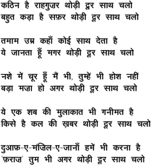kaThin hai raahaguzar tho.Dii duur saath chalo - - Ghulam Ali