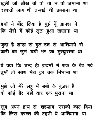 khulii jo aa.Nkh to wo thaa na wo zamaanaa thaa
