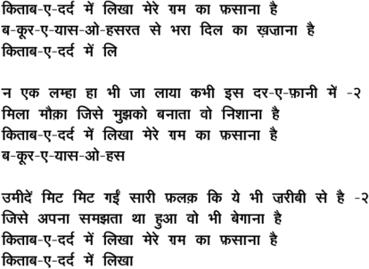 kitaab\-e\-dard me.n likhaa mere Gam kaa fasaanaa hai