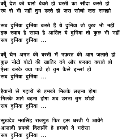 kyuu.N desh ko yaaro ... sab duniyaa duniyaa karate hai.n