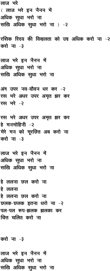 laaj bhare in nainan me.n adhik sudhaa bharo naa