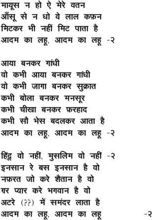 maayuus na ho ai mere vatan ... aadam kaa lahuu