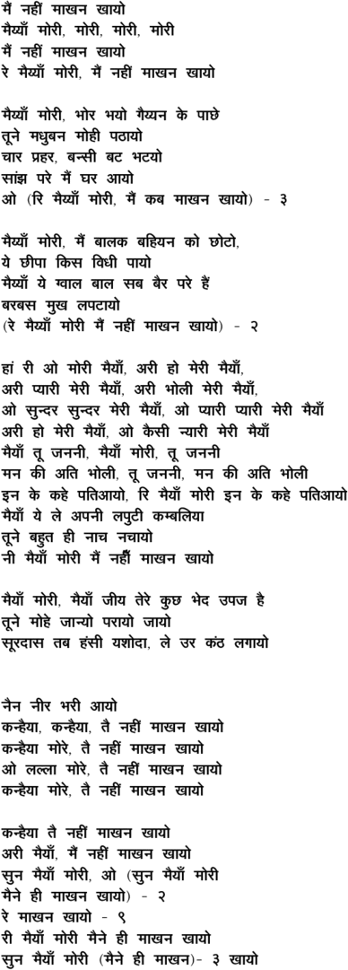 mai.n nahii.n maakhan khaayo mayyaa morii