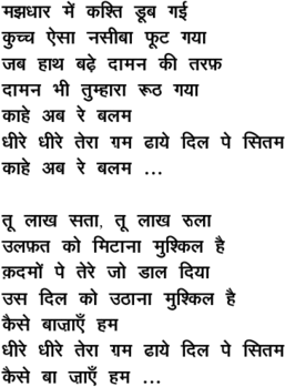 majhadhaar me.n Duub ga_ii ... kaahe ab re balam