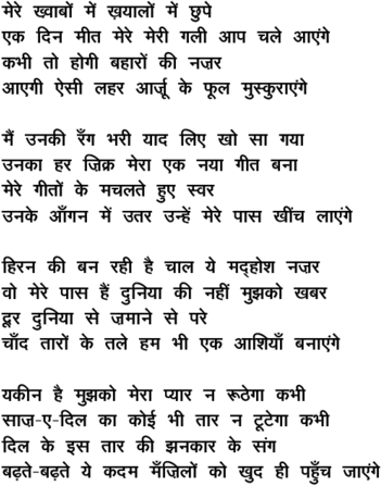 mere Kvaabo.n me.n Kayaalo.n me.n chhupe