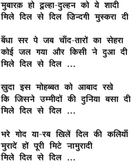 mubaaraq ho duulhaa\-dulhan ko ye shaadii