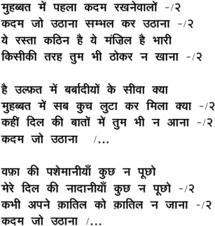 muhabbat me.n pahalaa kadam rakhanevaalo