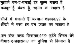 mujhako Gam\-e\-tanhaaii har zulm gavaaraa hai
