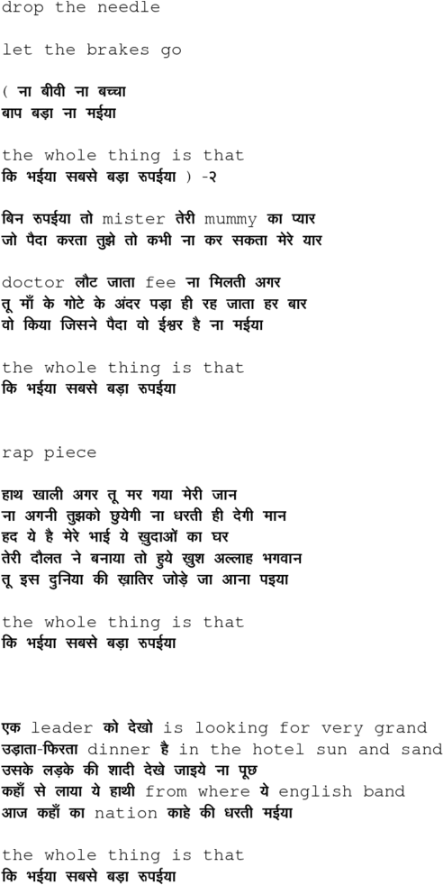 naa biiwii naa bachchaa ... ki bhayyaa sabase ba.Daa rupayiyaa