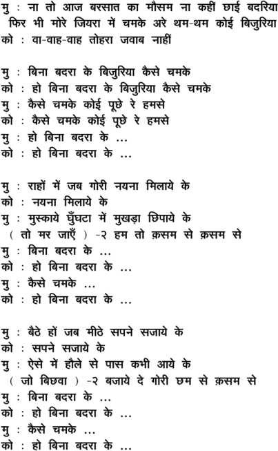naa to aaj barasaat kaa mausam ... binaa badaraa ke bijuriyaa