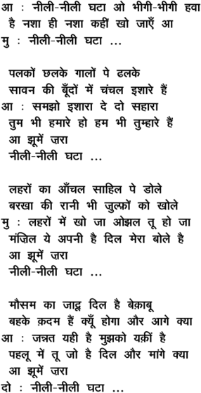 niilii\-niilii ghaTaa o bhiigii\-bhiigii havaa