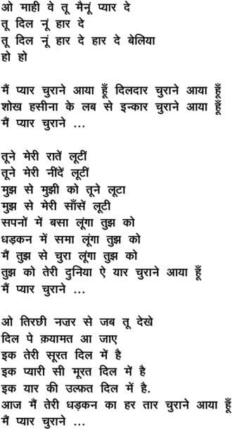 o maahii ve ... mai.n pyaar churaane aayaa huu.N
