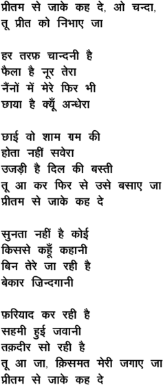 priitam se jaa ke kah de o cha.ndaa