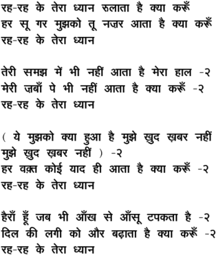 rah\-rah ke teraa dhyaan rulaataa hai kyaa karuu.N