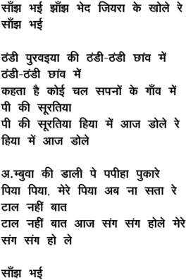 saa.Njh bha_ii jhaa.Njh bhed jiyaraa ke khole re