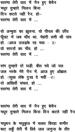 saara.ngaa terii yaad me.n, nain hue bechain