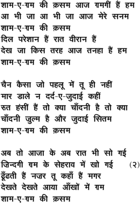 shaam\-e\-Gam kii qasam, aaj Gamagii.n hai.n ham
