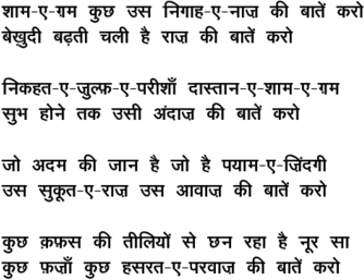 shaam\-e\-Gam kuchh us nigaah\-e\-naaz kii baate.n karo
