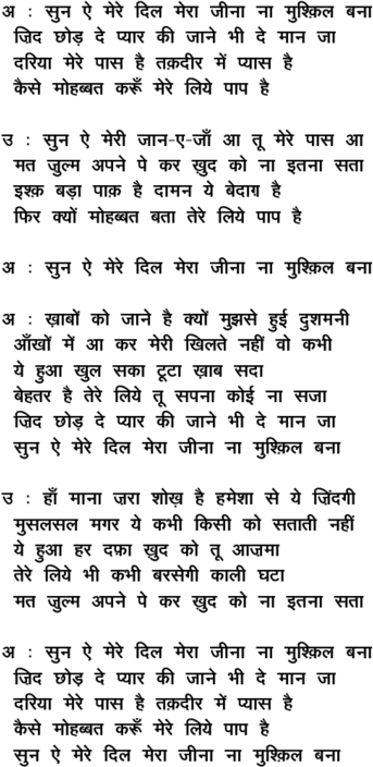 sun ai mere dil meraa jiinaa naa mushqil banaa