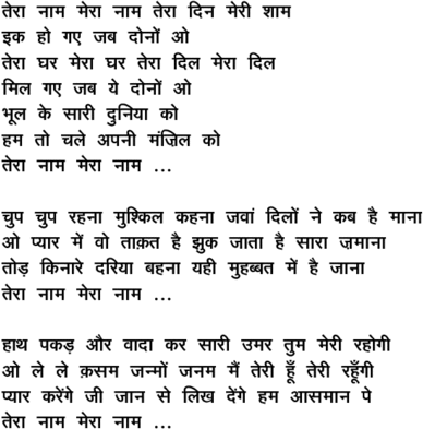 teraa naam meraa naam teraa din merii shaam